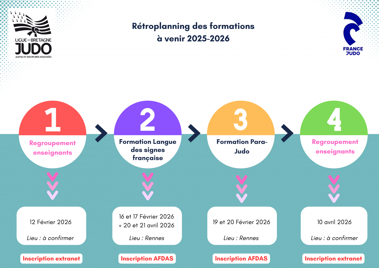 Bien évidemment, les enseignants ont également accès aux formations proposées par la fédération. En voici le catalogue, je vous invite à surveiller régulièrement sur le site de France Judo, les formations seront mises à jour au fur et à mesure.